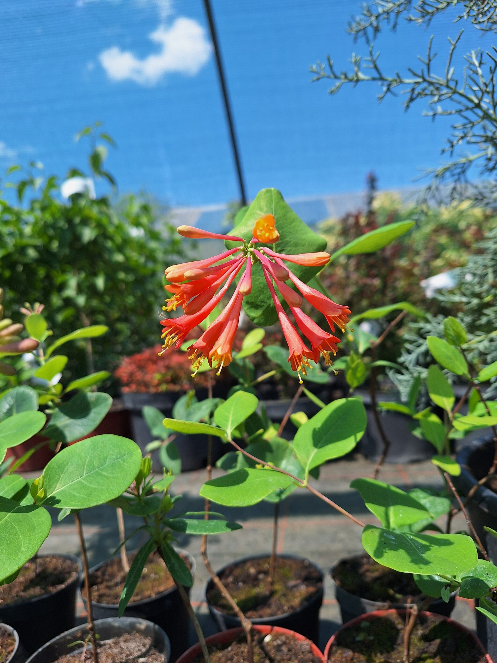 🌿 Lonicera × brownii “Dropmore Scarlet“ – orlovi nokti prepoznatljivi po intenzivnim narandžasto-crvenim cvetovima koji privlače poglede, ali i leptire i kolibrije. Ova višegodišnja puzavica iz porodice Caprifoliaceae razvija snažne vitice koje se lako penju uz rešetke, pergole, ograde i zidove. Nije invazivna poput nekih drugih vrsta orlovih nokata i pogodna je za kontrolisano gajenje u dekorativnim vrtovima.